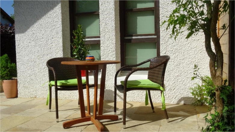 - Außenbereich: Eigene Terrasse mit Gartenblick